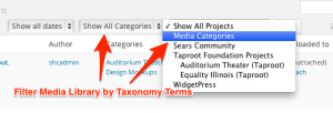 One of the most frequent feature requests made for this plugin has been the ability to filter items in the Media Library by taxonomy, just like you can on the Posts admin list. We’ll I’ve done that, so now you’ll have a separate drop-down for each taxonomy assigned to work with Media Categories.